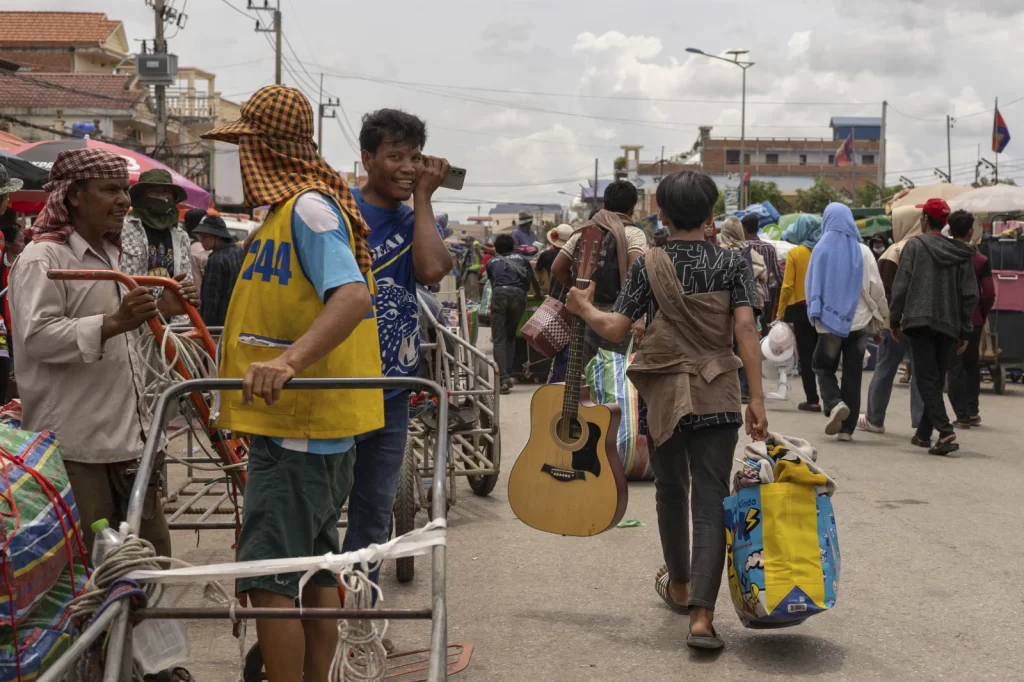 KAMRIENG, Cambodia (AP) — Hundreds of thousands of Cambodian migrant workers have been heading home from Thailand as the two countries work to keep a ceasefire in armed clashes along their border.