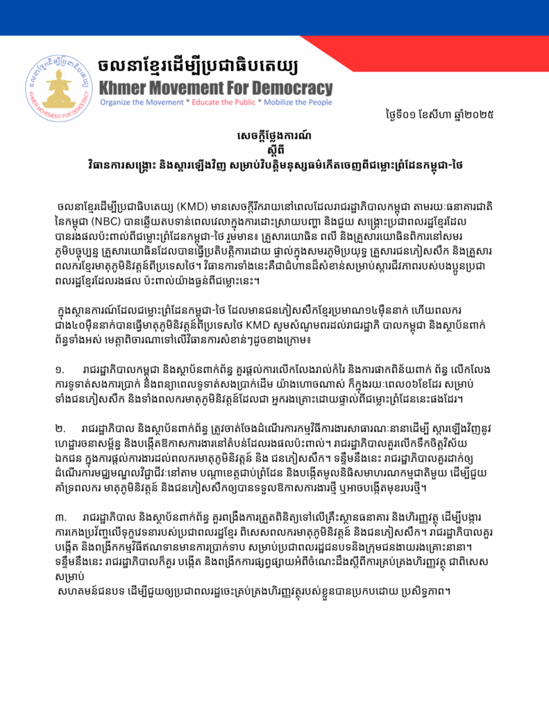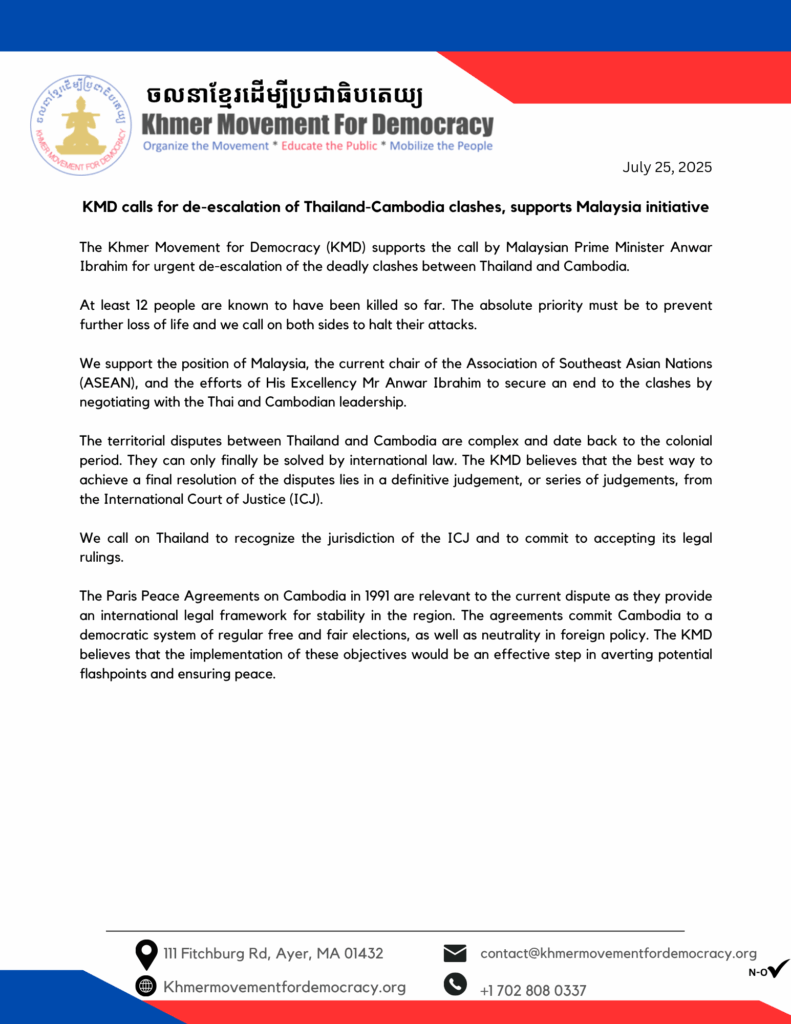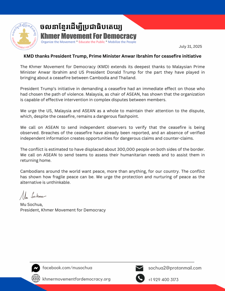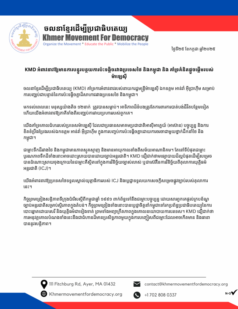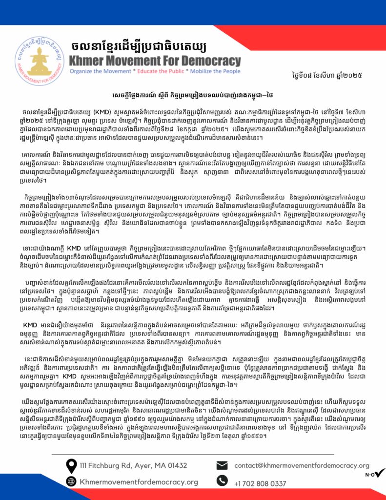 KMD Statement on the Cambodia-Thailand Ceasefire Agreement