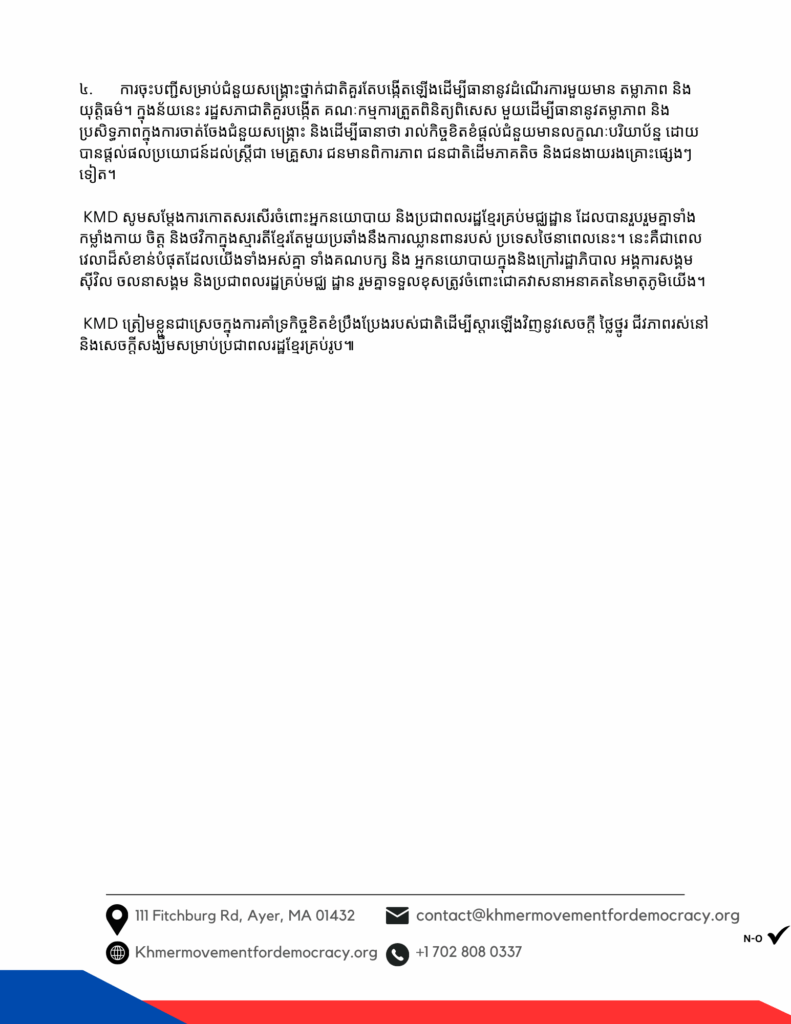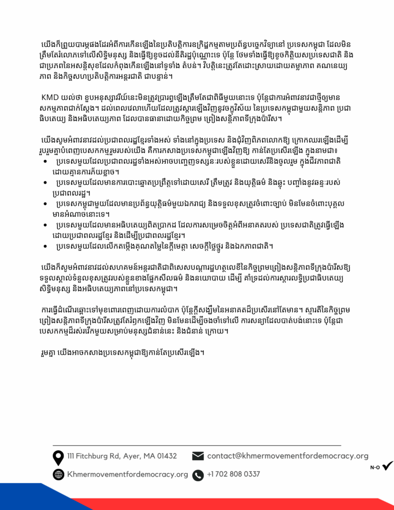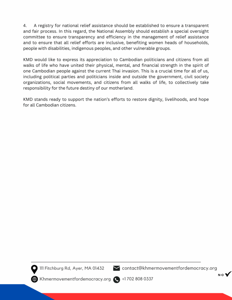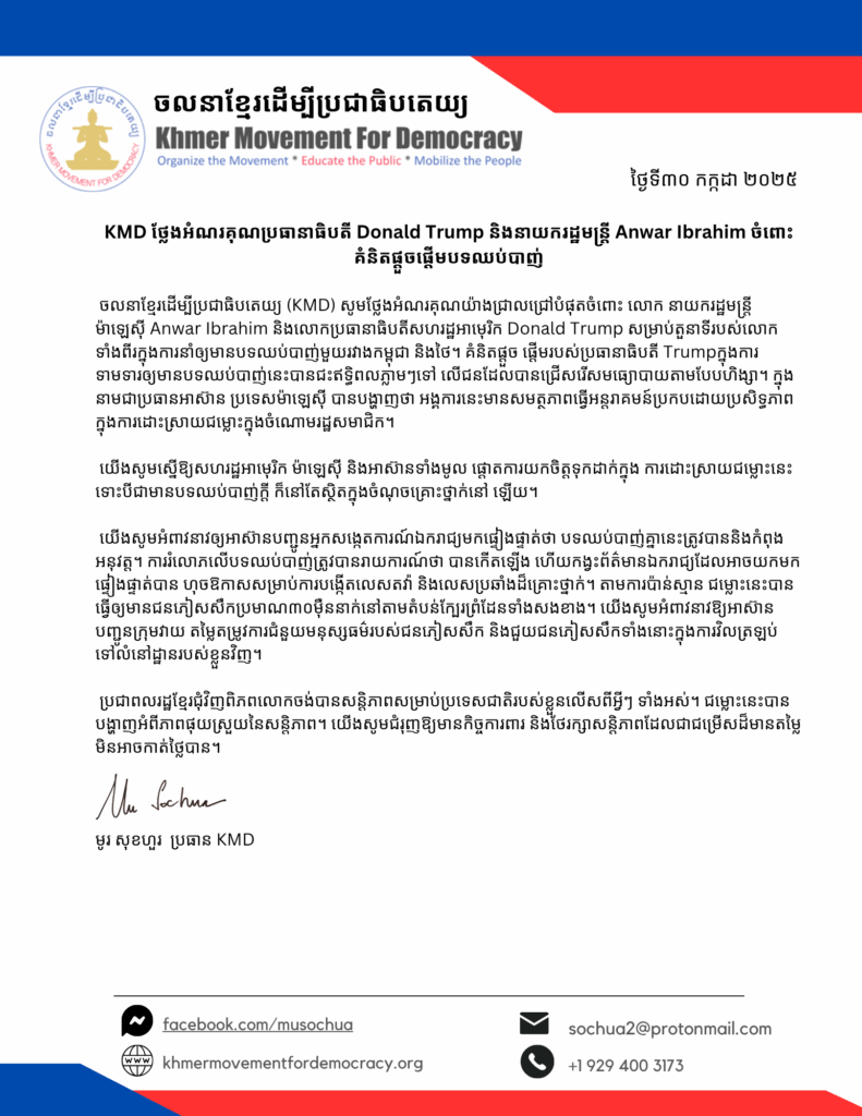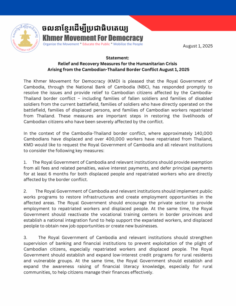 KMD Statement on the Cambodia-Thailand Ceasefire Agreement