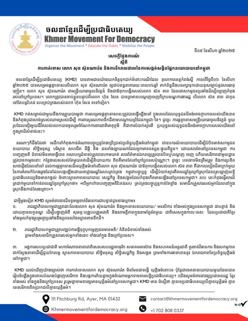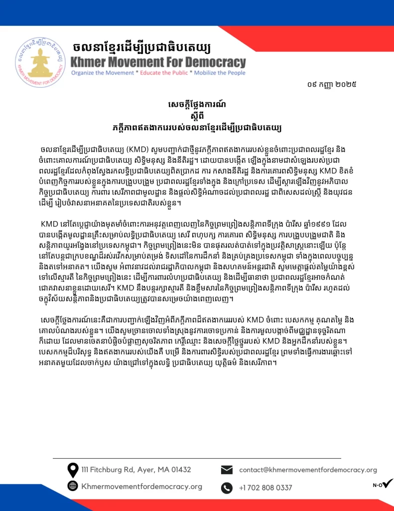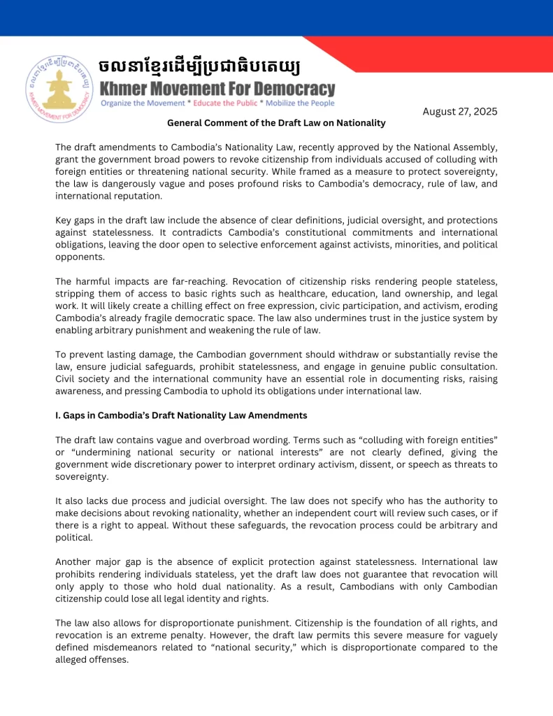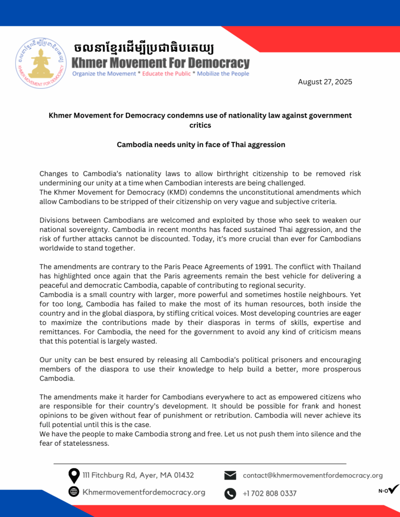 Khmer Movement for Democracy condemns use of nationality law against government critics