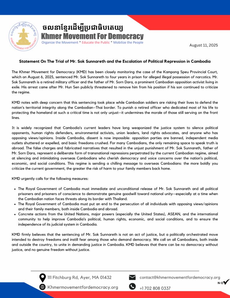 Statement On The Trial of Mr. Sok Sunnareth and the Escalation of Political Repression in Cambodia