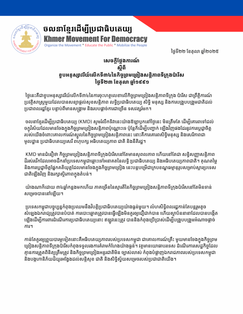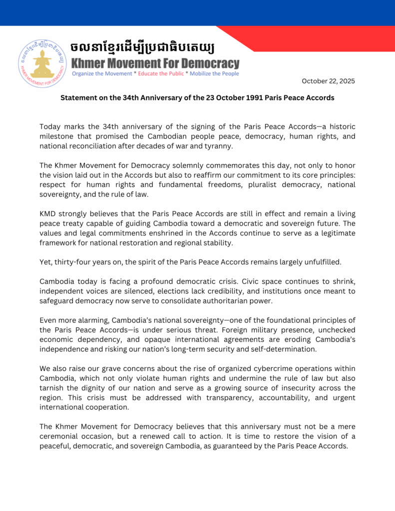 Statement on the 34th Anniversary of the 23 October 1991 Paris Peace Accords